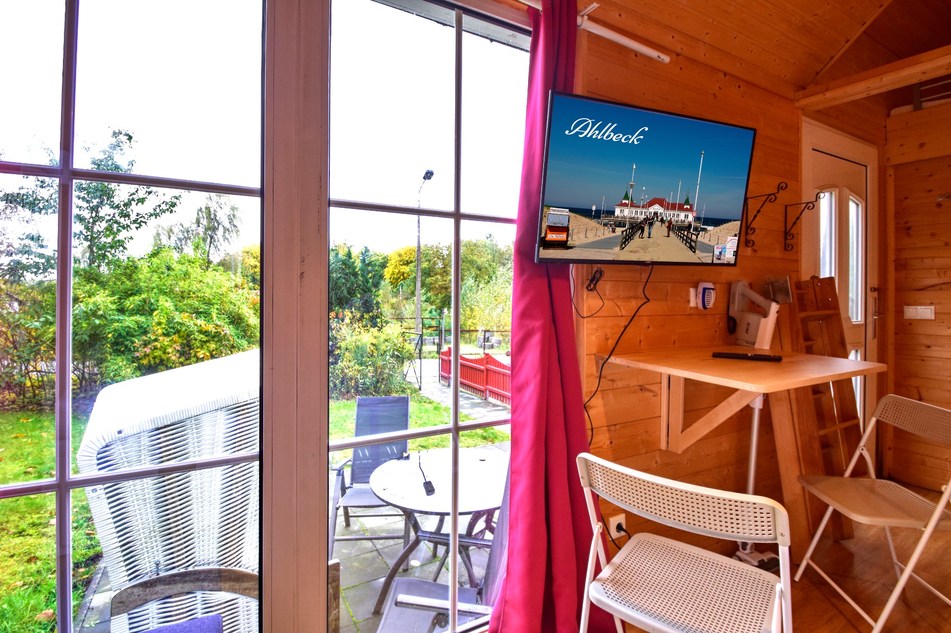 Wollten Sie schon immer mal Urlaub in einem modernen Tiny House im Grünen machen? Dann sind Sie bei uns genau richtig! Auf kleinstem Raum finden Sie alles, was Sie zum Entspannen und Erholen brauchen. Das nachhaltig gebaute Tiny House bietet Platz für vier Personen (zwei Schlafplätze 2x90x200 und zwei Schlafplätze im Hochbett 130x220) mit integrierter Küche und einem Bad mit Dusche. Wollen Sie den Tag mit einer Yoga Session starten? Kein Problem - das großzügige und grüne Grundstück bietet Ihnen genügend Platz. Der Usedomer Wald ist direkt vor Ihrer Haustür und lädt zu einem ausgiebigen Spaziergang oder einer Joggingrunde ein. Kommen Sie dann erschöpft zurück, wartet eine Regendusche im Tiny House auf Sie. Machen Sie es sich bequem und genießen Sie den Ausblick durch weiten und hellen Terrassenfenster, während Sie gemütlich auf dem Bettsofa liegen und Ihr Lieblingsbuch lesen. Wie wäre es zum Ausklang eines romantischen Abends mit etwas Leckerem vom rustikalen Außengrill auf der Terrasse oder einem Rotwein? Legen Sie die Beine hoch und entspannen Sie sich. Bei uns bleiben keine Wünsche offen. Kommen Sie mit dem Auto oder vielleicht ganz sportlich mit dem Fahrrad? Für beides haben wir selbstverständlich einen Platz auf dem Grundstück. Das ist noch längst nicht alles. Sie finden bei uns kostenfreies WLAN, Smart-TV mit Streaming Funktion, kleiner Kühlschrank mit Gefrierfach, Induktions-Kochplatte, Mikrowelle mit Heißluft und Grill, Wasserkocher, Kaffeemaschine, Toaster, Föhn und vieles mehr.